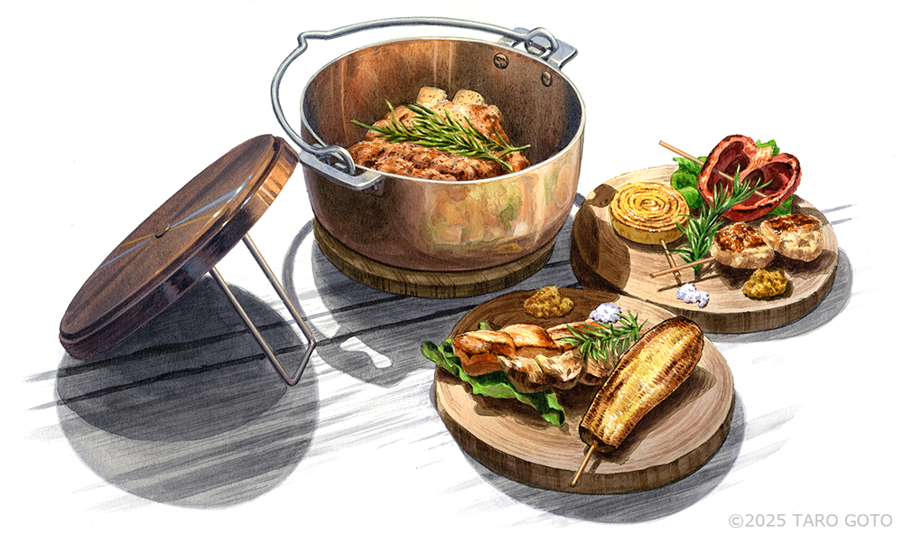 旅や食、日常のひとコマをやわらかな色合いで描いています。